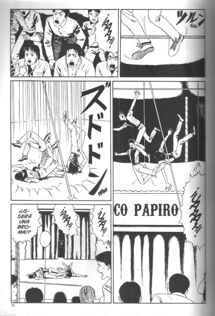 El circo ha llegado a un pueblo remoto y muchos jóvenes acuden a la función atraídos por Laelia, una bella muchacha que actúa en el circo como funámbula. Uno de los payasos se cae mientras intentaba mantener el equilibrio y se golpea la cabeza contra el suelo. El payaso no se mueve tras la caida y es arrastrado bajo la carpa por los otros payasos. El mismo destino sufren tres funambulistas que también caen al suelo y son arrastrados fuera de la vista del público.